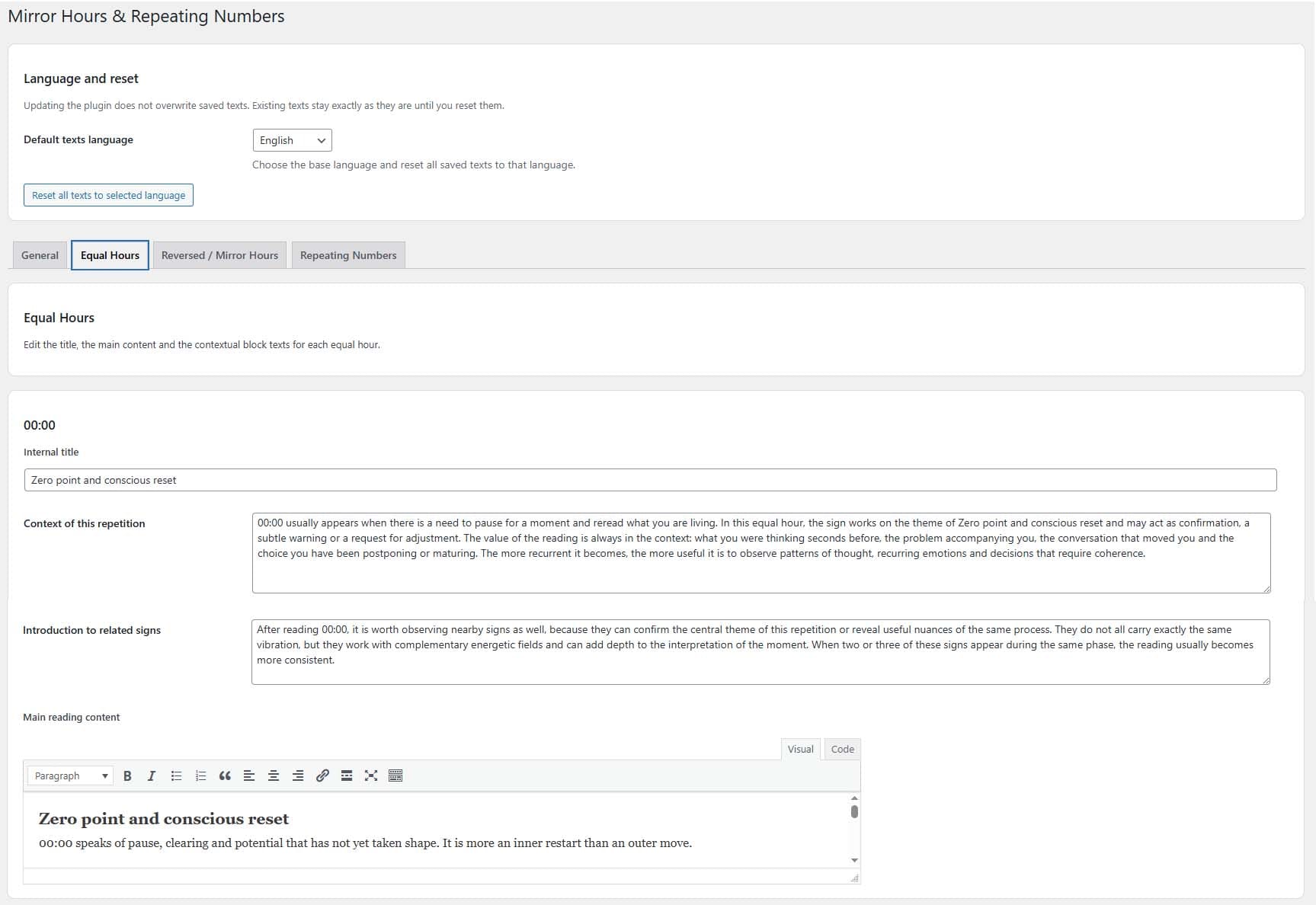 All titles, readings, introductions, and contextual text are editable directly in WordPress. No code files to touch.