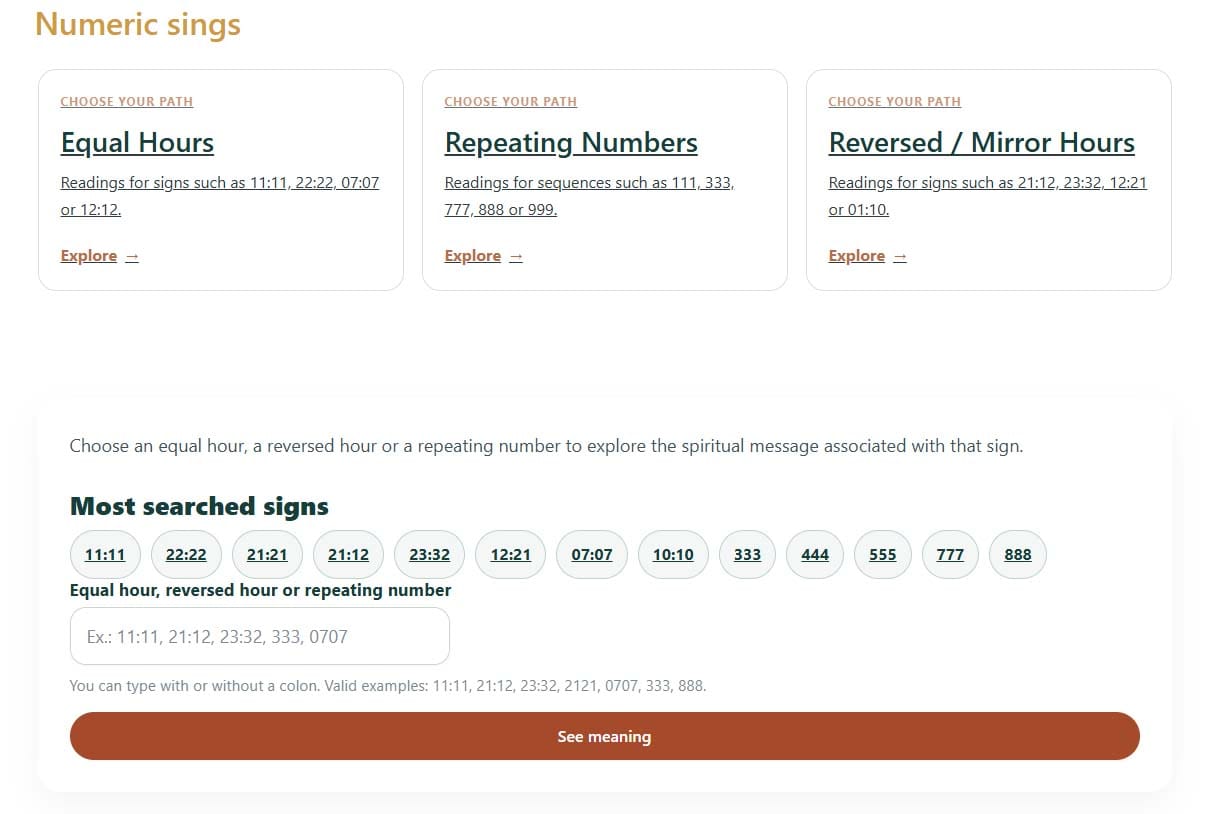 Create a complete section of mirror hours, reverse hours, and repeating numbers on your WordPress site — with SEO structure, integrated search, and simple management in the dashboard.